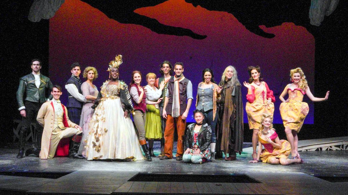 You already know the story of these famous characters’ lives: Jack plants his beans and slays the giant at the top of the beanstalk. Little Red Riding Hood and her Grannie kill the wolf. Cinderella defies her stepmother and stepsisters (Sarah Dacey Charles, Megan Orticelli and Zoë Aarts, respectively), goes to the ball and falls in love with the prince (Kevin Toniazzo-Naughton). Rapunzel falls in love with her prince, too (Pepe Nufrio). After many adventures in search of their four items, The Baker and his Wife present them to the Witch, and they soon have a baby.