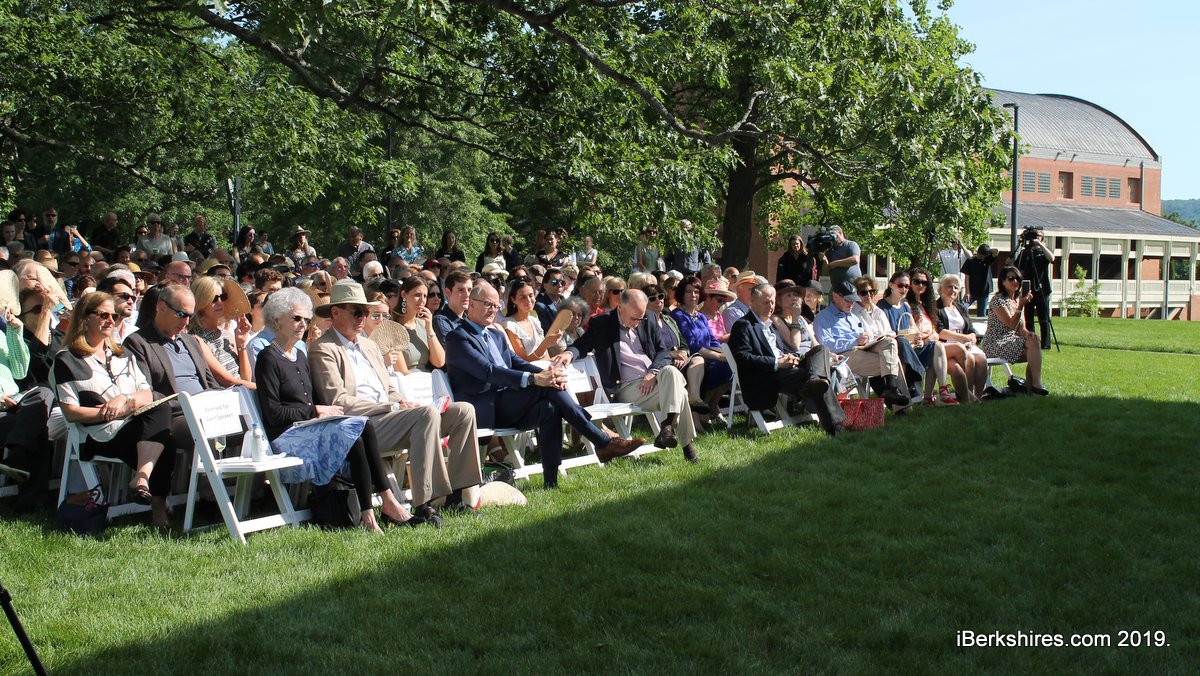 "Thank you to [Tanglewood director] Tony [Fogg] and everyone for welcoming us back. Ozawa Hall opened 25 years ago, and his chronology was correct: It was July 7 when interviewed, and July 7 when Ozawa Hall opened, so it is almost 30 years ago to the day since we were first passionately connected to Tanglewood. We asked Doug Reed and Adrian Nial [of Reed Hilderbrand] to join in creating a soft rolling landscape for the Linde Center. It looks like its been here forever. There was a lot of moving of earth."
