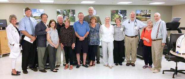 Donors and staff gathered on the evening of Tuesday, June 25, to tour the newly renovated Cardiac Rehabilitation Department at Southwestern Vermont Medical Center, part of Southwestern Vermont Health Care. The renovation included new lighting and ceiling tiles, new exercise and heart-monitoring equipment, and new floors and fixtures. A nearby storage room was converted to expand exercise space. Fresh paint and appealing local artwork make the space welcoming to the more than 80 patients who participate in cardiac rehabilitation weekly.