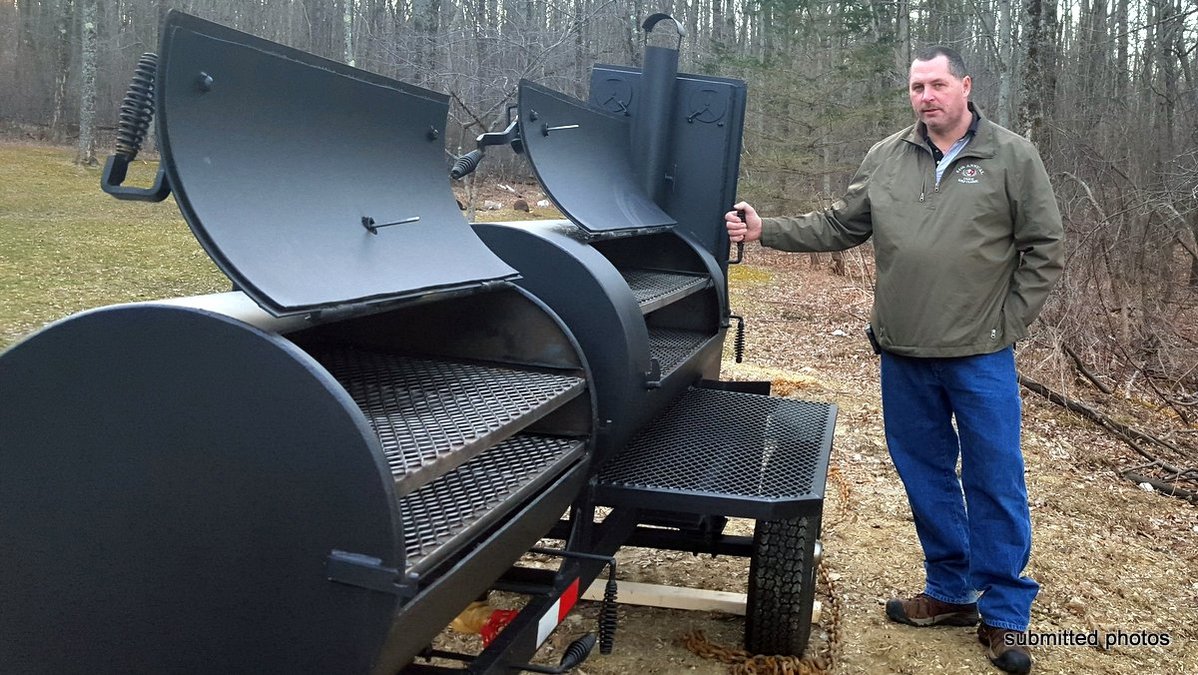 George Rinaldi with his smokers. Rinaldi, of Hinsdale, is a regular on the BBQ competition circuit. He will be competing at the Harpoon BBQ Festival in Windsor, Vt., next week.