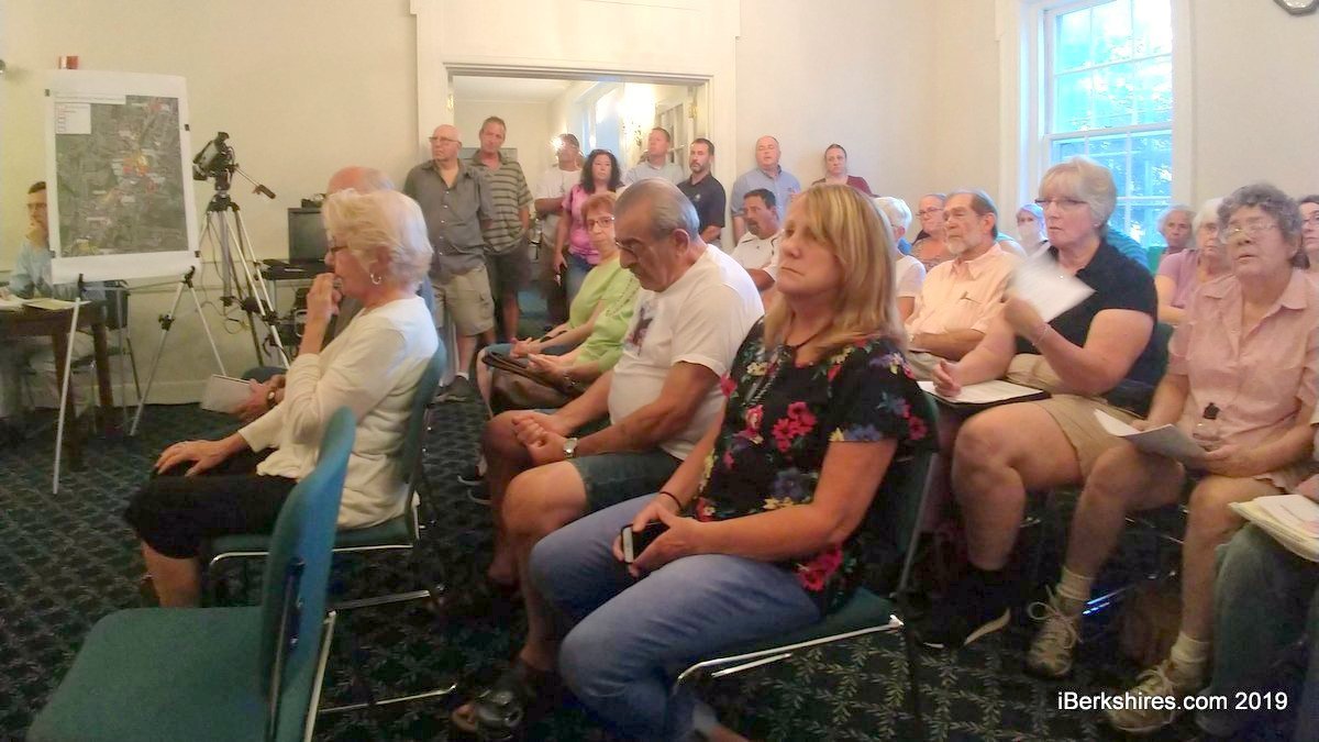 The standing-room only crowd in the Selectmen's meeting room were vehemently against the zoning amendment, calling it short-sighted and wrong for the small community and worried that it would increase Adams' low-income population.