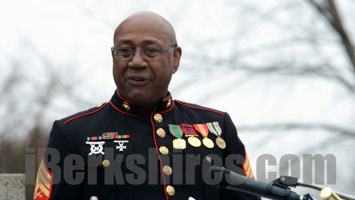 Marine Corps veteran Curtis Janey speaks at Veterans Day ceremonies in Pittsfield. See more photos here.