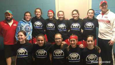 Bottom row, from left: Raegan Rose, Maryn Cappiello, Sophie Reid, Lily Speed, Nora Mosier. Top row: coach Jay Lesure, Hanna Shea, Taylor Garabedian, Abby Scialabba, Ashlyn Lesure, Emma Meczywor, Haley McNeice, coach Ryan Shea.