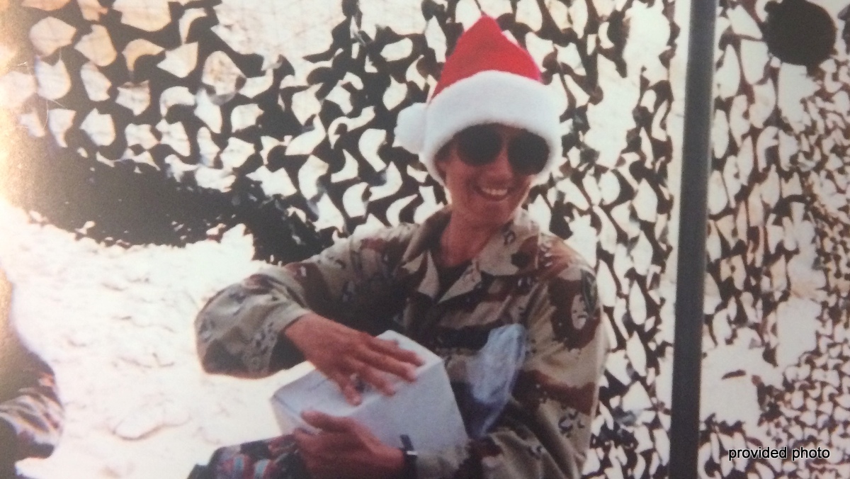 Mary Roberts celebrating the holidays overseas during Desert Storm.