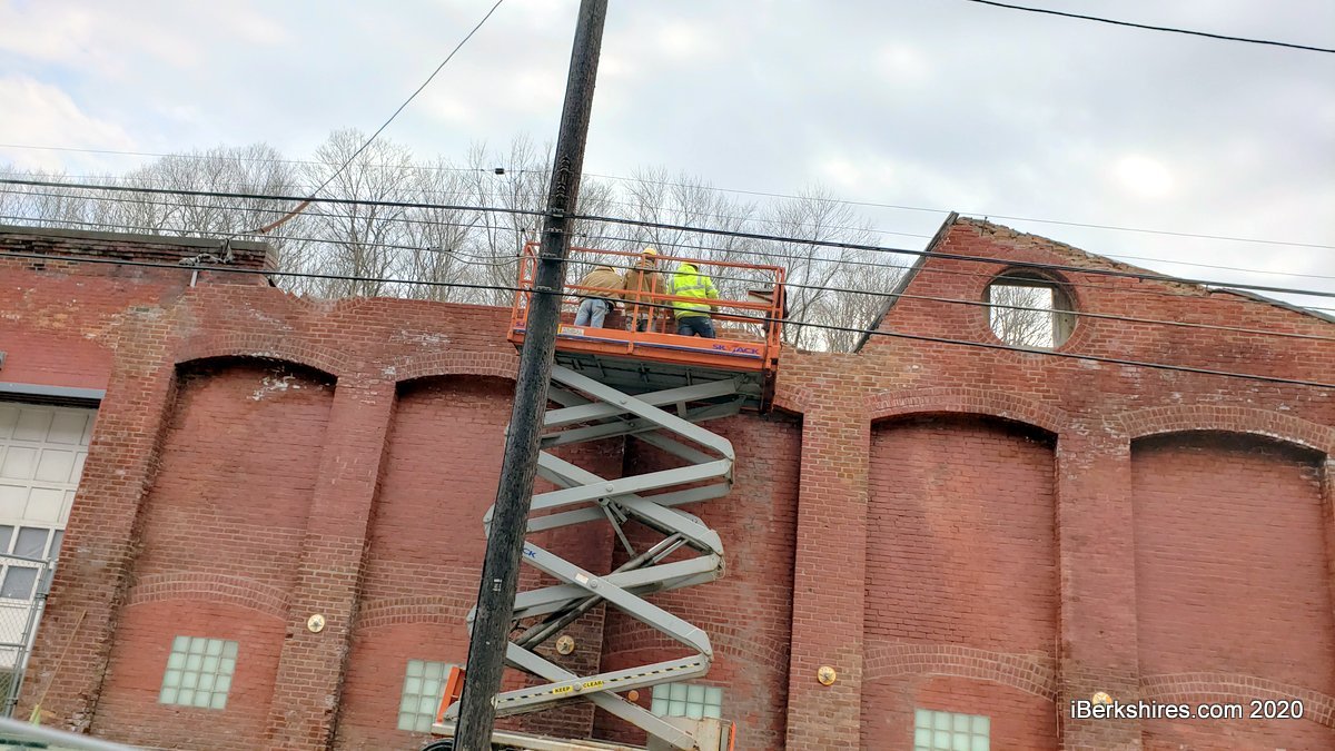 The condition of the 500-foot-long nearly freestanding wall of the former textile mill (Hoosac Mill No. 2) had been brought up by City Councilor Robert Moulton Jr. after some bricks fell from one section. The owner responded with a preliminary engineering report and a plan to fix unstable sections, and the city's Building Inspector William Meranti did a visual inspection of the structure.