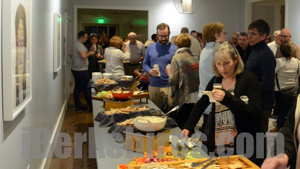The event started in the gallery around 6 p.m. on Thursday as attendees dug into Wormtown Mass Whole Lager cheddar cheese fondue beer cheese, crudite, loaves, pretzels, and Lavash -