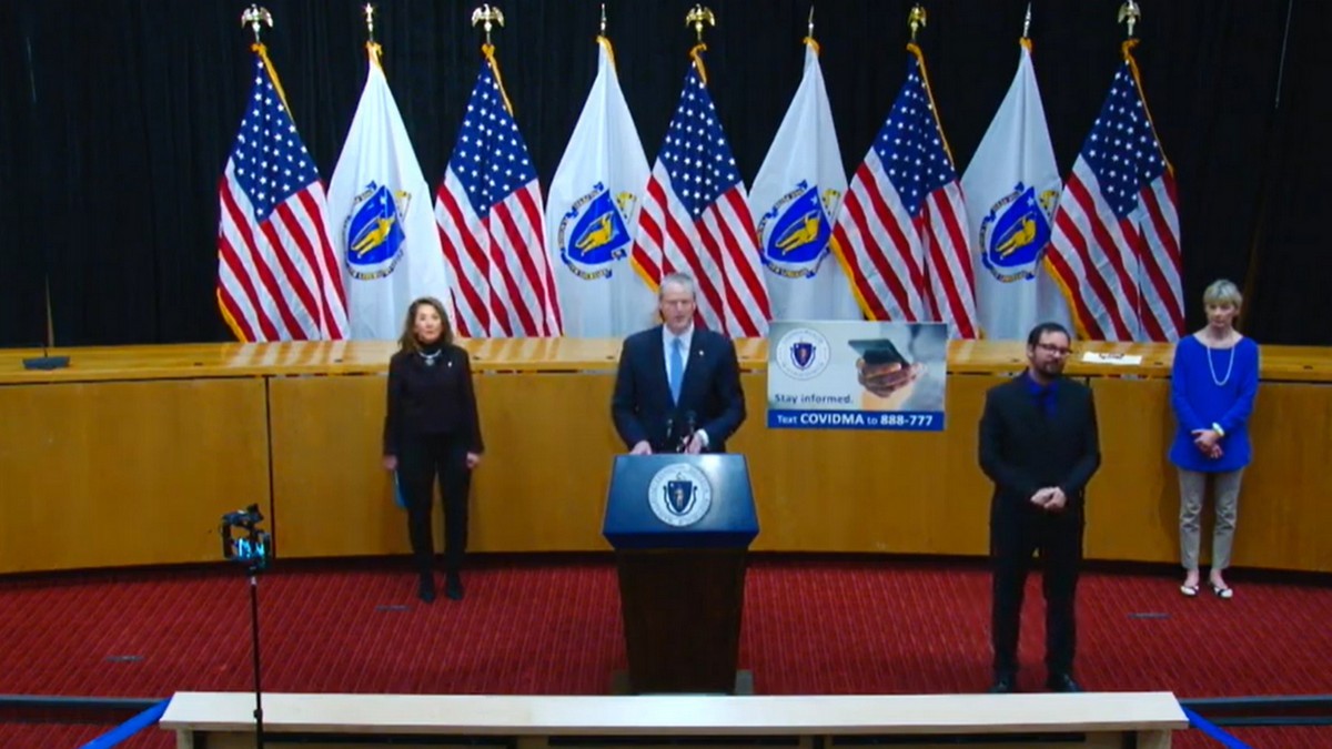 State officials give the daily COVID-19 briefing in a livestream from Boston.