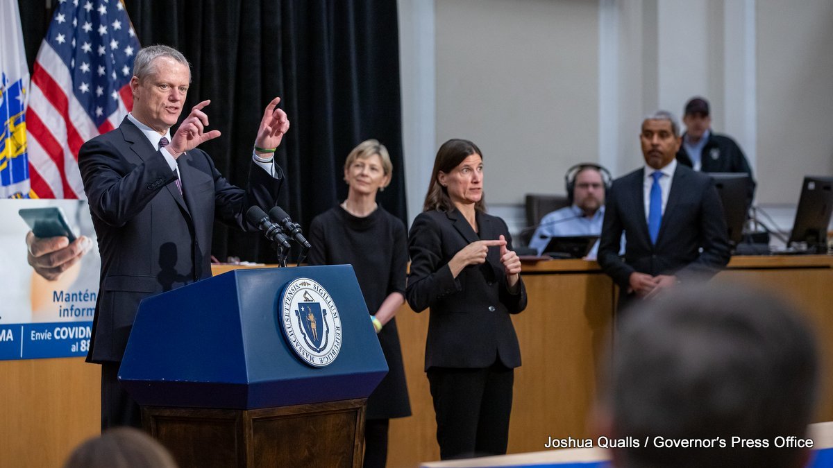 The governor said his administration — including Secretary of Health and Human Services Marylou Sudders and Secretary of Housing and Economic Development Michael Kennealy — have been in discussions with business leaders on the path forward.