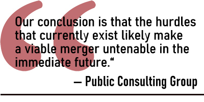The report by Public Consulting Group looks at a broad range of factors and challenges in such a merger and comes to the conclusion it can be beneficial to both towns if "done thoughtfully."