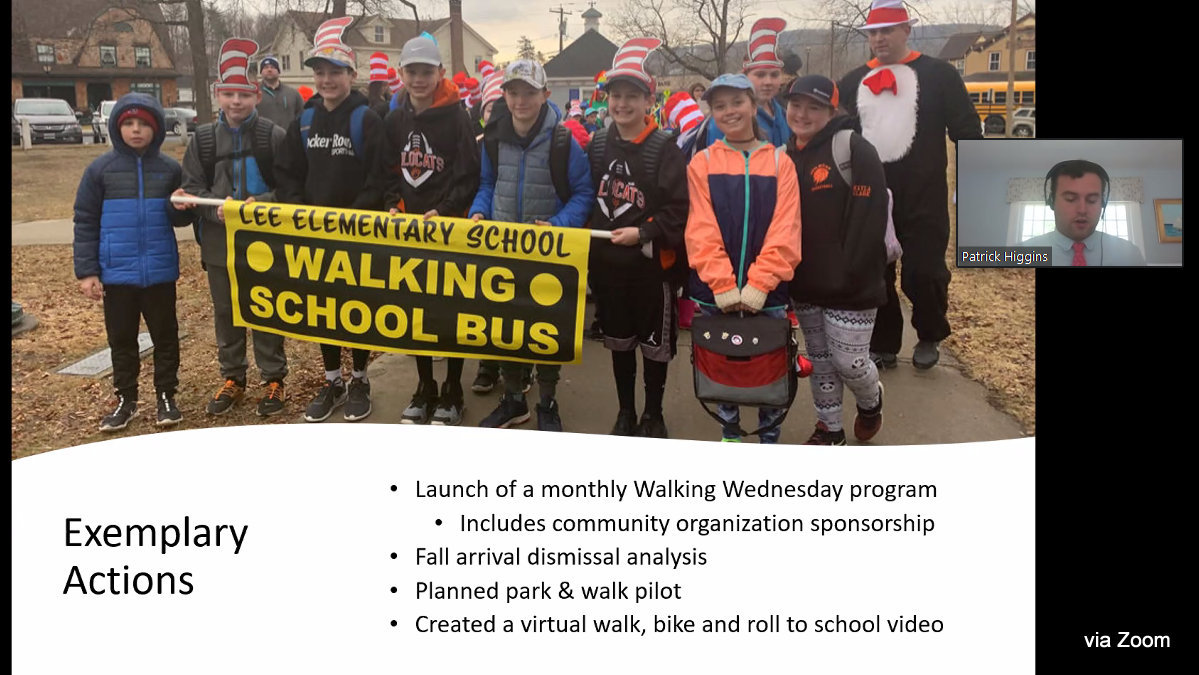 "In addition to participating in safe routes flagship events, Clarksburg focused its 2019-2020 efforts on reducing the number of cars traveling to and from school, he said. "It planned on launching a regular bike-to-school event, and also began exploring a safe trails to school idea for those living near a trail that serves the school. This is particularly noteworthy as outdoor recreation is popular amongst the Berkshire community."