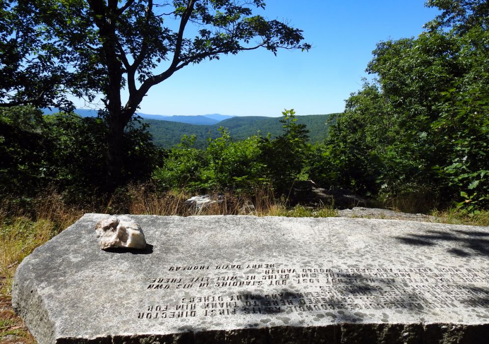 Visitors should park to the far left of the lodge, and follow hiker signage to the "Drifter" beginner-level ski trail. Signage will indicate where to turn off Drifter, to access the Mahanna Cobble trail. The Cobble trail has clear directional signage to a vista atop the North Yokun Ridge. There, visitors will find a stone bench, dedicated to BNRC's founding executive director George Wislocki, which provides a place to rest and enjoy the long view of uninterrupted forest to the south.
