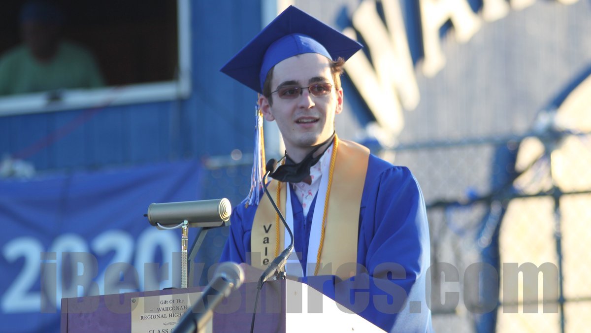 "We've spent the past four years at Wahconah being inspired by our amazing teachers, by our coaches, and by each other. In the time we've been away we've grown somewhat disconnected from each other and our normal academic routines, but we have not lost sight of our amazing community," he said. "The old building we're leaving behind will have its place taken by a newer, sleeker one — one without a leaky roof or collapsing ceiling tiles — and in a few years the campus will in all likelihood be almost unrecognizable. But we'll still have our memories of our time here. We're all about to rise to a new stage in life, but we will be doing so with the help of the foundation we built here."