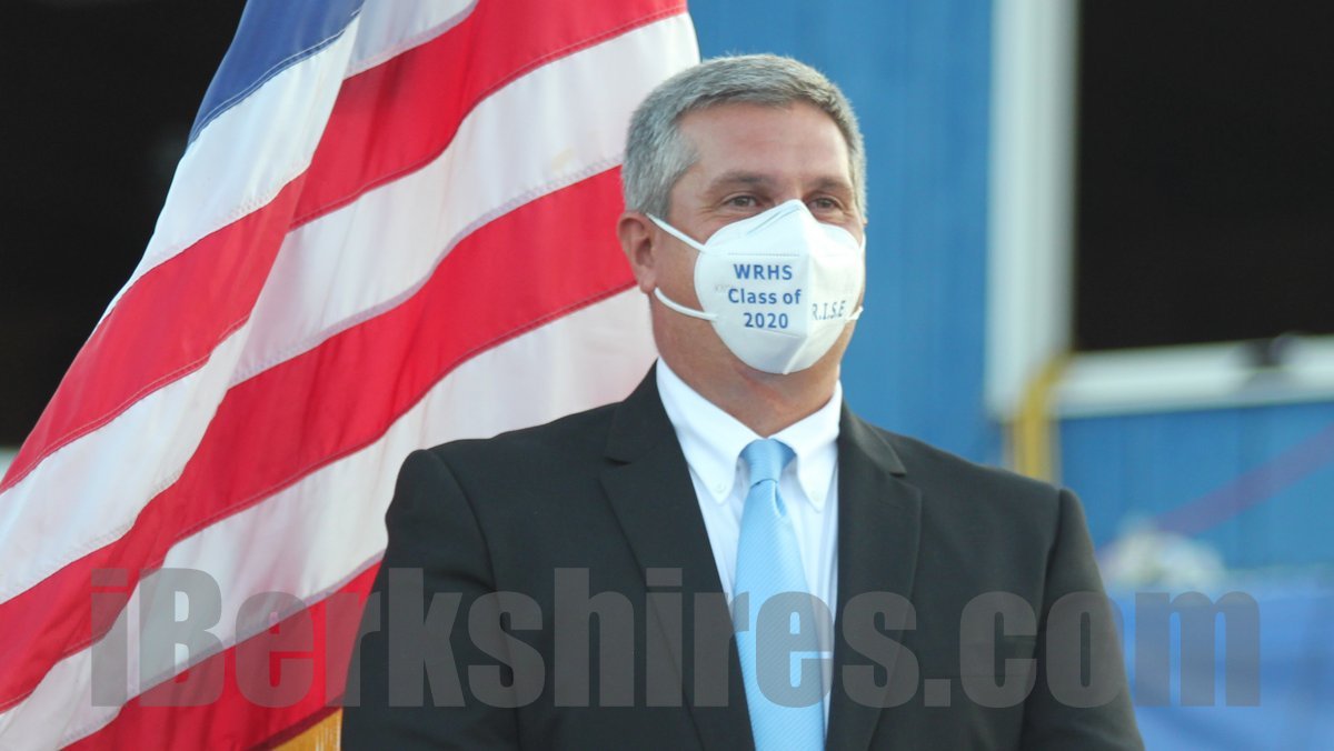 "We're gathered here today for this unprecedented event to pay final tribute to the Wahconah class of 2020," said Principal Aaron M. Robb, speaking to the 117 graduates and their families spread out across the Warriors' football field under a setting sun.