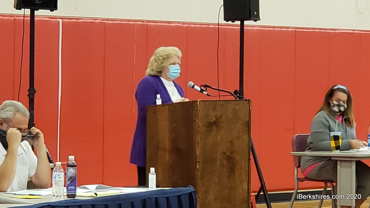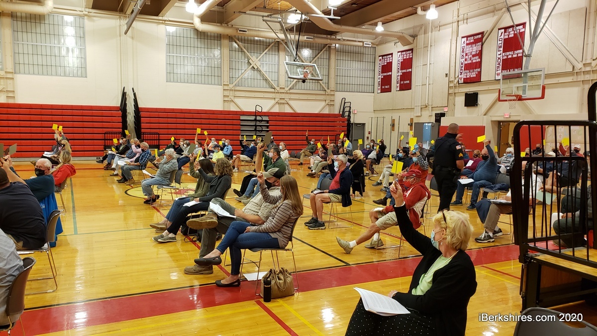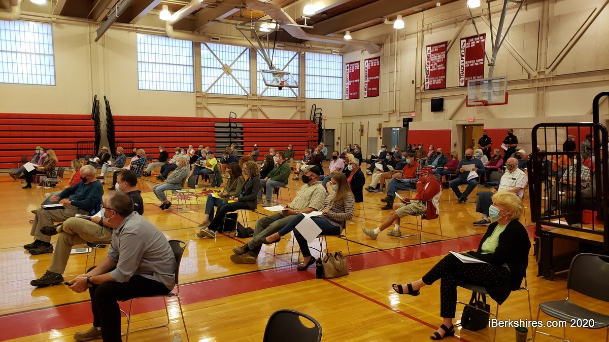 The delayed annual town meeting was held at Hoosac Valley High School to ensure room for social distancing.Town meeting votes to move forward with design work for Cheshire School. Town officials are looking to turn the school property into town offices, a community center and public safety facility.