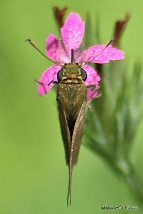 Likely northern broken dash skipper imbibing nectar at Deptford pink.