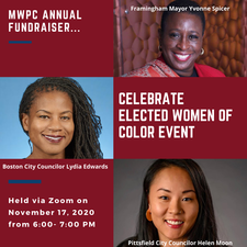 This year MWPC will honor and award Public Service Awards to Mayor Yvonne Spicer of Framingham, Boston City Councilor Lydia Edwards, and Pittsfield City Councilor Helen Moon.