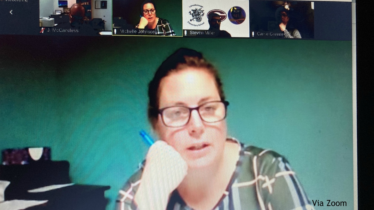Michelle Johnson, who was elected to the School Committee in November, participates Thursday in her first meeting of the committee's Finance Subcommittee.