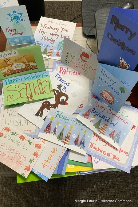 Williamstown resident Linda Rash sent a box of Christmas cards, which she has been doing regularly since the pandemic started. Many entities also submitted cards and letters including Richmond Consolidated School, Gladys Allen Brigham Community Center, HospiceCare in the Berkshires, Hillcrest Educational, Williams College athletes who wrote 200 cards, and Crane Stationery Co., which donated 170 Christmas cards that physical therapist Catherine Cybulski and her daughter filled out.