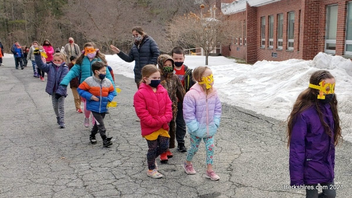 CLARKSBURG, Mass. — The school community on Wednesday marked its 100th day of in-person learning with a small parade and the presentation thanking students and staff for their perseverance.