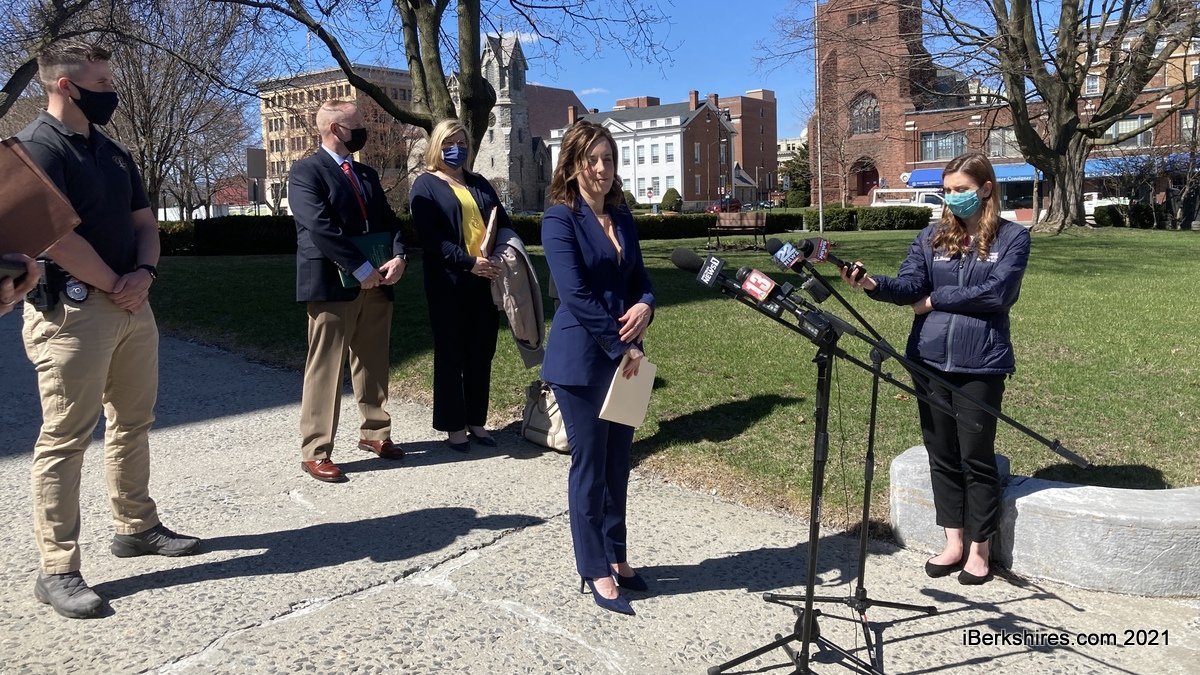 Berkshire District Attorney Andrea Harrington speaks about charges filed against an Adams couple in relation to the death of a foster infant in their care.