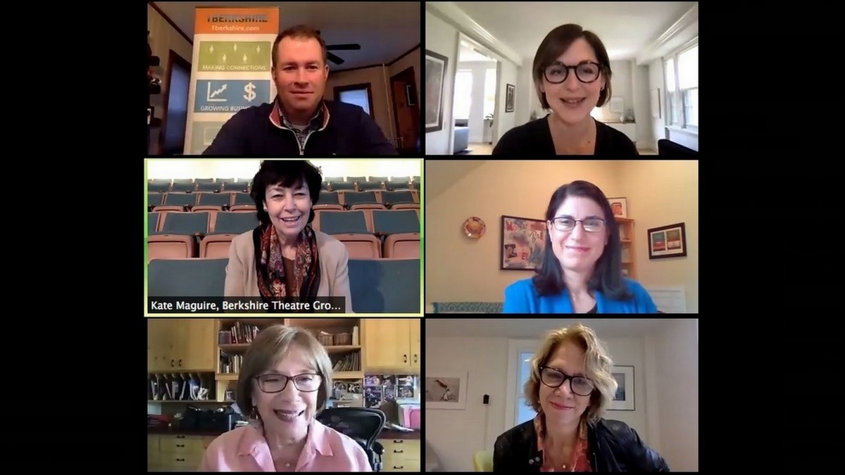 Artistic Directors Mandy Greenfield of Williamstown Theatre Festival, Kate Maguire of Berkshire Theatre Group Kate and Julianne Boyd of Barrington Stage Company; Alexandra Fuchs, chief operating officer of the Boston Symphony Orchestra; and Pamela Tatge, director of Jacob's Pillow Dance, joined 1Berkshire CEO Jonathan Butler for a virtual town hall on Friday.