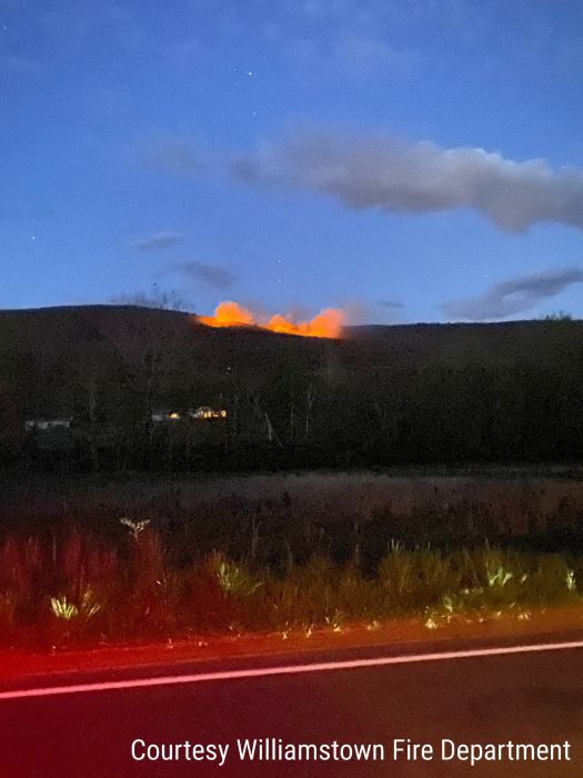 About three dozen personnel from the fire departments of Williamstown, Clarksburg, Hancock, Lanesborough, New Ashford, North Adams and Pownal, Vt., plus the Adams Forest Wardens responded to the blaze that first was reported at 5:44 p.m.