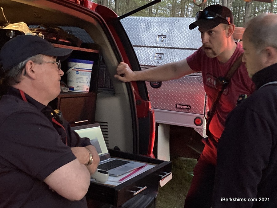 Pedercini was coordinating operations from the main command center with North Adams Fire Chief Brent Lefebvre and Lanesborough Fire Chief Charlie Durfee. Williamstown Forest Warden Rick Daniels was in the woods with the crews fighting the blaze.