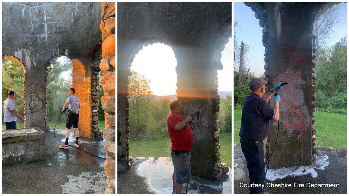 CHESHIRE, Mass.— The Cheshire Fire Department removed graffiti from the vandalized Stafford Hill Monument on Thursday.