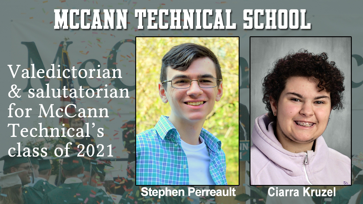 NORTH ADAMS, Mass. — McCann Technical School has named Stephen Perreault and Ciarra Kruzel as the class of 2021's valedictorian and salutatorian, respectively.