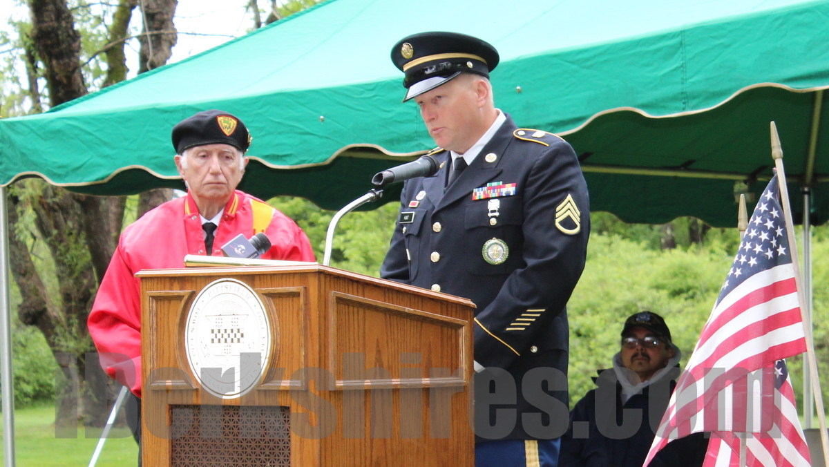 Adams had dispensed with a parade given the short notice for assembly but the observance still included a nod to local veterans, an honor guard and attendance by local officials and Bourdon as guest speaker. Deacon Gregory LaFreniere of Sts. Patrick & Raphael Parish in Williamstown gave the prayers.