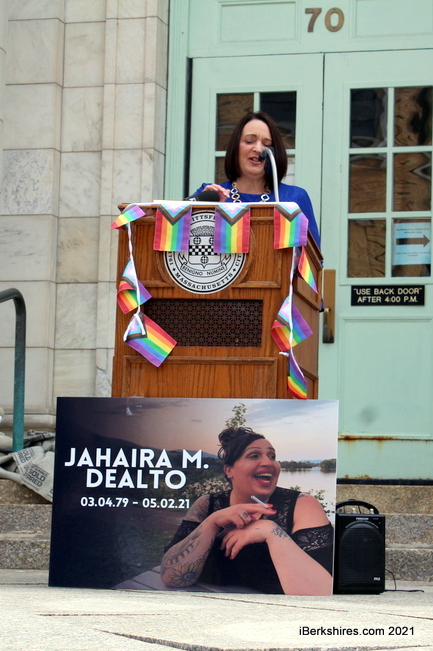 "Jahaira was an original founder of pride, she helped start the first Transgender Day of Remembrance here in the Berkshires and she helped set the foundation for the LGBTQ-plus community to organize here for the first time," said Kelan O'Brien, chair of Berkshire Pride, at the Pride flag-raising event at City Hall on Wednesday. "We have always been here. She provided that foundation."