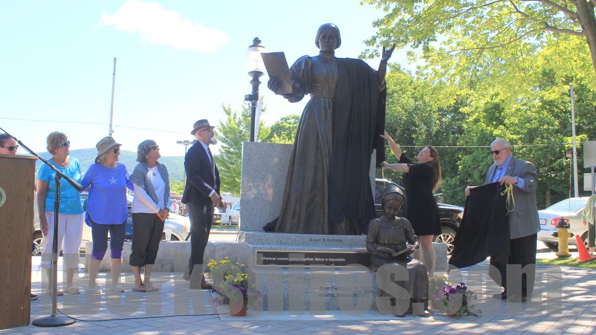 Town Administrator Jay Green was master of ceremonies and the statue was unveiled by members of the Adams Suffrage Centennial Celebration Committee and an Anthony relative.
