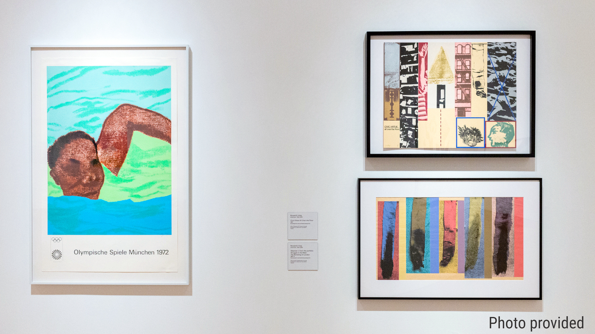 The Olympic poster of Ronald B. Kitaj, left, is seen alongside other Kitaj works in the exhibition that opens Friday, July 30, the first show at the Williams College Museum of Art when it reopens to the public.