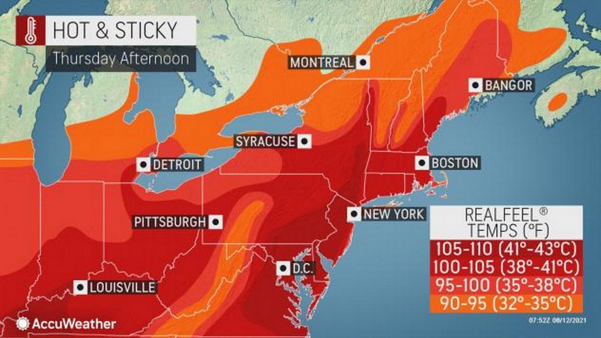 Accuweather says the steamy air over the Northeast will generate severe thunderstorms through the end fo the week. The Berkshires will have a "real feel" temperature of between a 100 and 110 degrees.