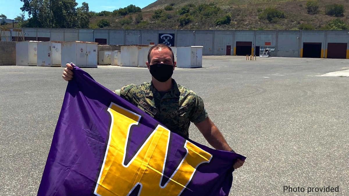 Joseph Grillo celebrates his acceptance to Williams College while serving in the Marines at Camp Pendleton in California.