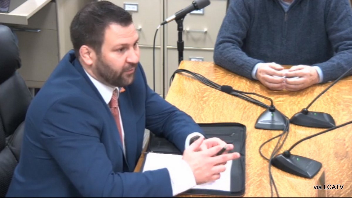 Joshua Lang, a former Pennsylvania county commissioner, interviews Wednesday with the Selectmen for the vacant town administrator position. He was offered the post after the interview.