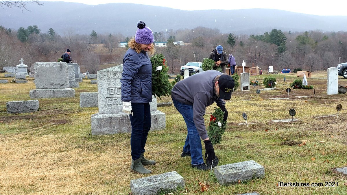 NORTH ADAMS, Mass. — Dozens of volunteers on Saturday placed more than 1,000 wreaths on the graves of the city's veterans at Southview Cemetery as a memorial to their sacrifices.