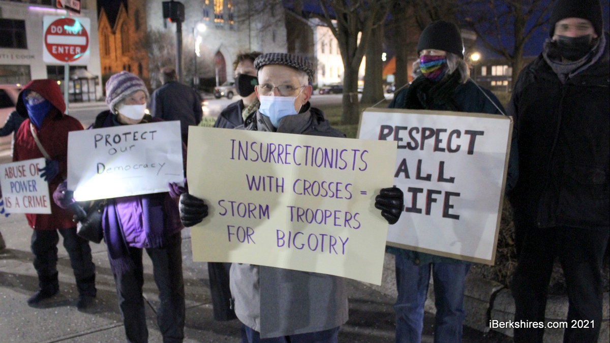 A standout in Pittsfield's Park Square in the evening attracted more than 20 who stood in the cold with signs.