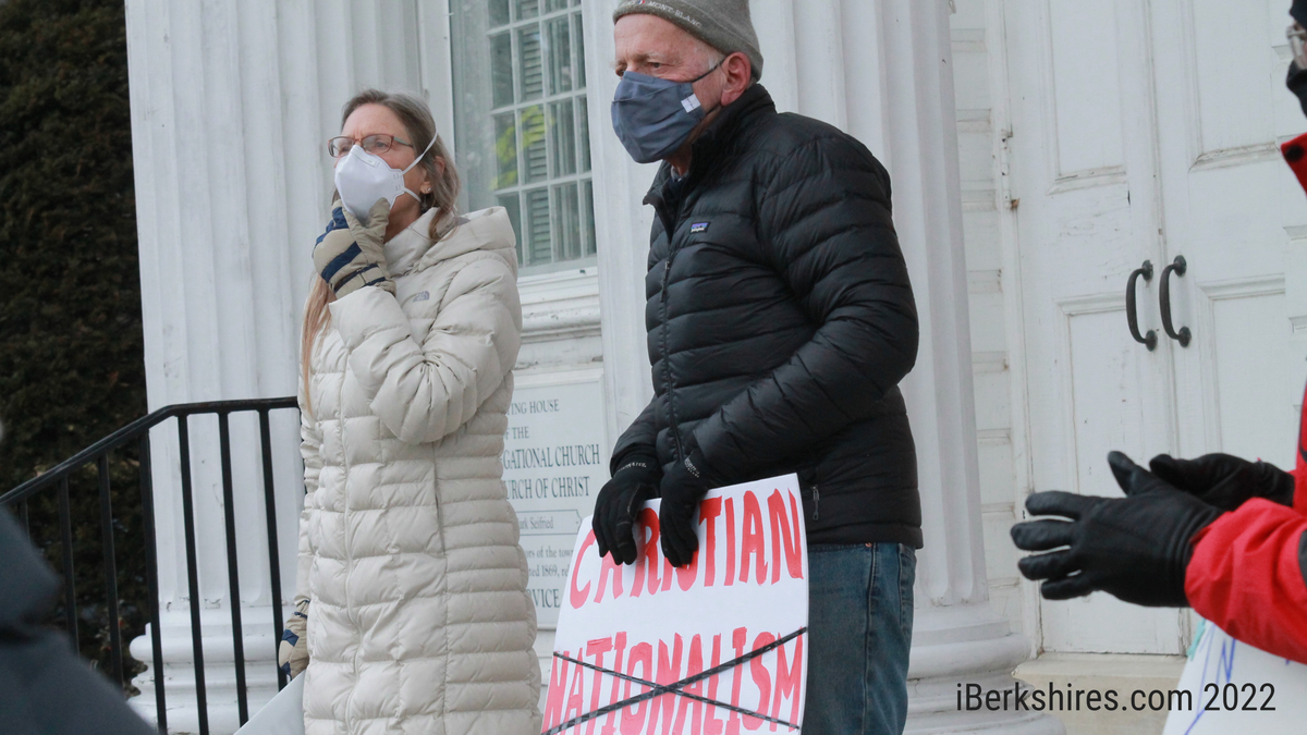 Down the road in North Adams, dozens stood out on the front lawn of First Congregational Church on Main Street.