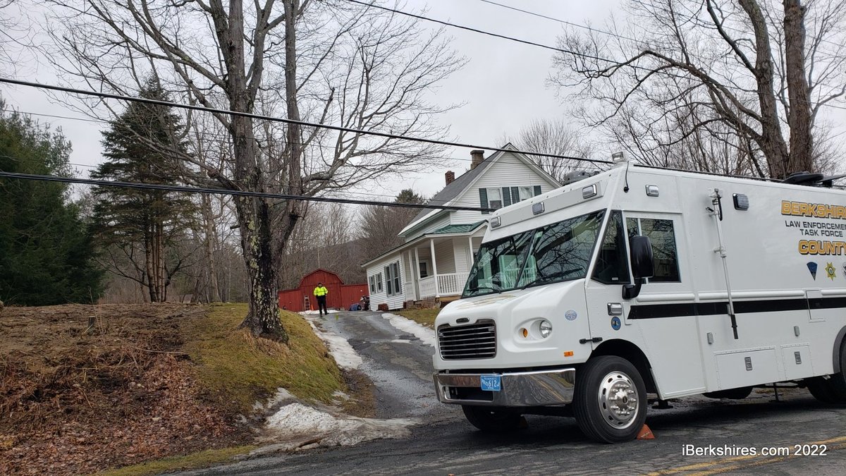 The Berkshire Law Enforcement Task Force vehicle was parked in front of 175 Middle Road; the medical examiner's vehicle was reportedly at the scene earlier.