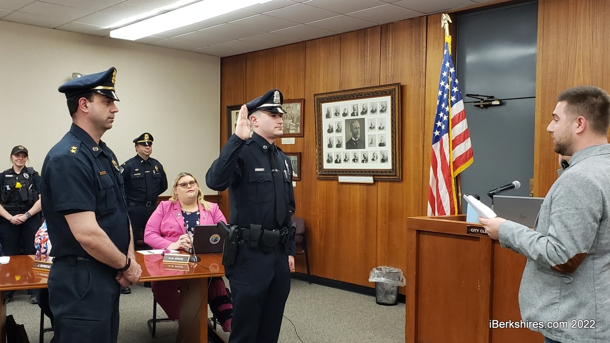 • Michael Cogswell was sworn in as a full-time police officer on the North Adams Police Department. On April 7, he completed the Police Academy, where he was named squad leader of his group.
