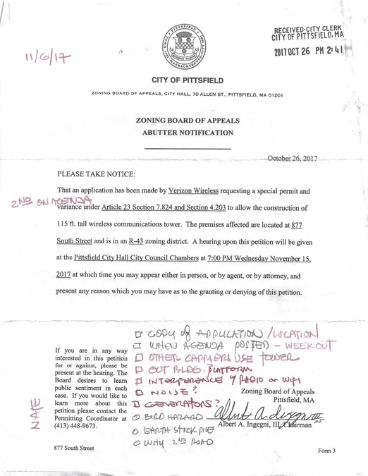 Last year, he told iBerkshires that Lori Court residents received an initial notice and a final approval notice for the tower.
