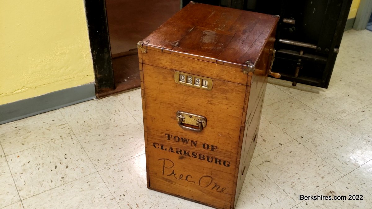 The old ballot box for Precinct 1 and its little bell that rang when a ballot was hand cranked into it has been stored away in the vault with two others. The town once had three precincts, a nod to the neighborhood clusters that were a fair distance from each other.