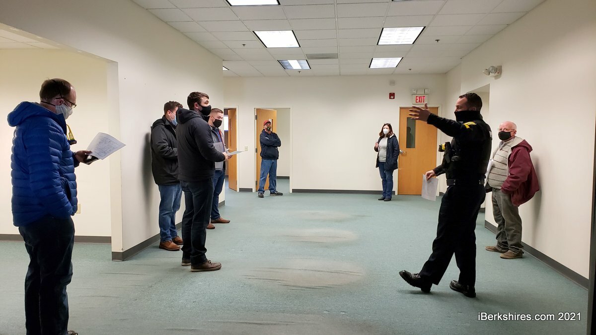 The Public Safety Committee tours the former Juvenile Court with police officers in early 2021. Mayor Jennifer Macksey expects the Police Department to operate out of the Berkshire Plaza for the next two to three years.