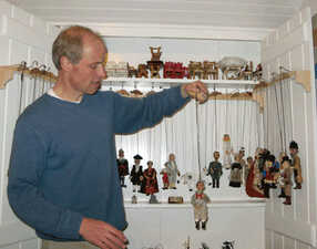 Sprague has been a puppeteer since childhood. He inherited a collection of 60 antique Czech marionettes, each about eight inches tall, that were assembled by his great-grandfather, Julius Hybler, with purchased heads and hand-made costumes. Hybler's legacy also includes two marionette theaters.