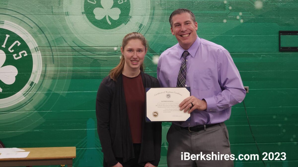 "This is from the Mass Association of School superintendents, my organization," Dean told Scholz as he presented her with the award. "Coming to you as the top student at Hoosac Valley, so congratulations."