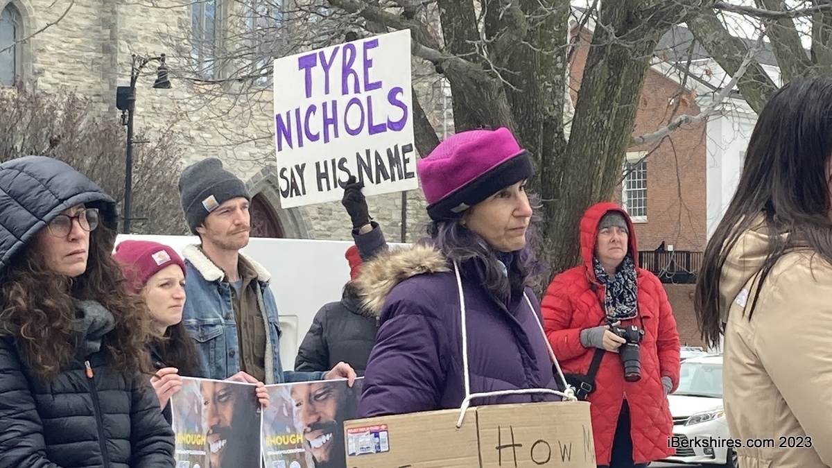 PITTSFIELD, Mass. — Protesters on Sunday condemned continued police brutality following the fatal beating of Tyre Nichols in Memphis, Tenn. in early January.