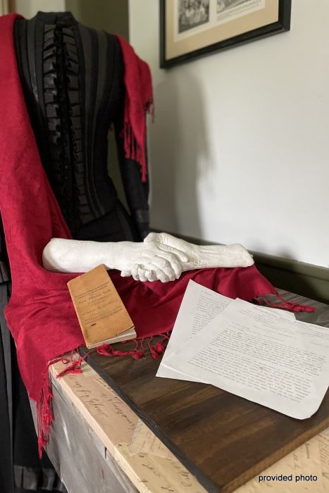 One of four plaster casts of the clasp between Susan B. Anthony and Elizabeth Cady Stanton will be on display at the Anthony Birthplace Museum beginning Aug. 24. Other items on display were donated on permanent loan by Nora Sabo, Anthony's great-grandniece.