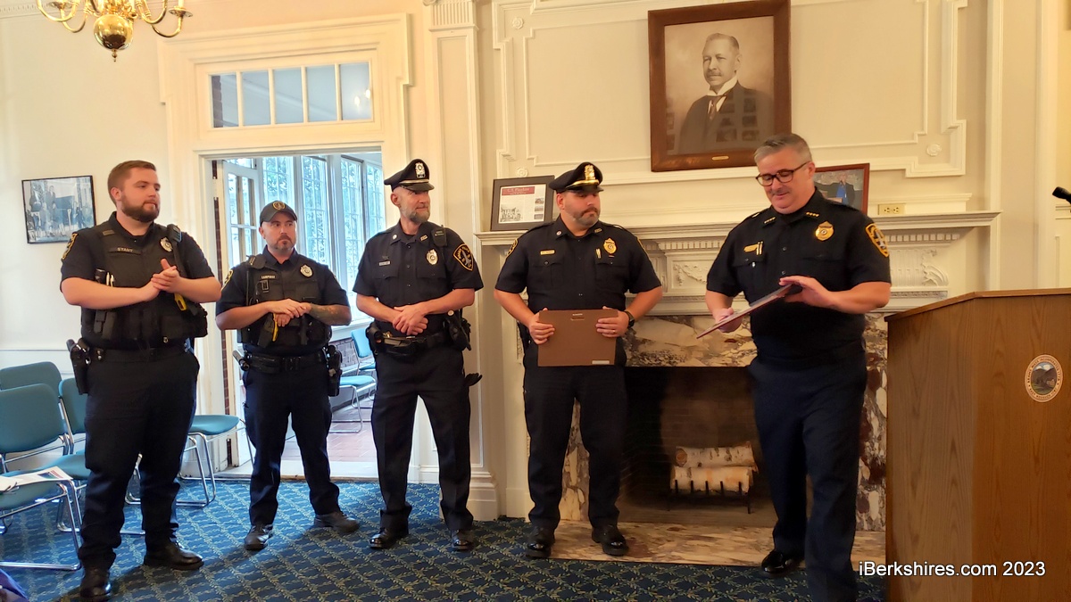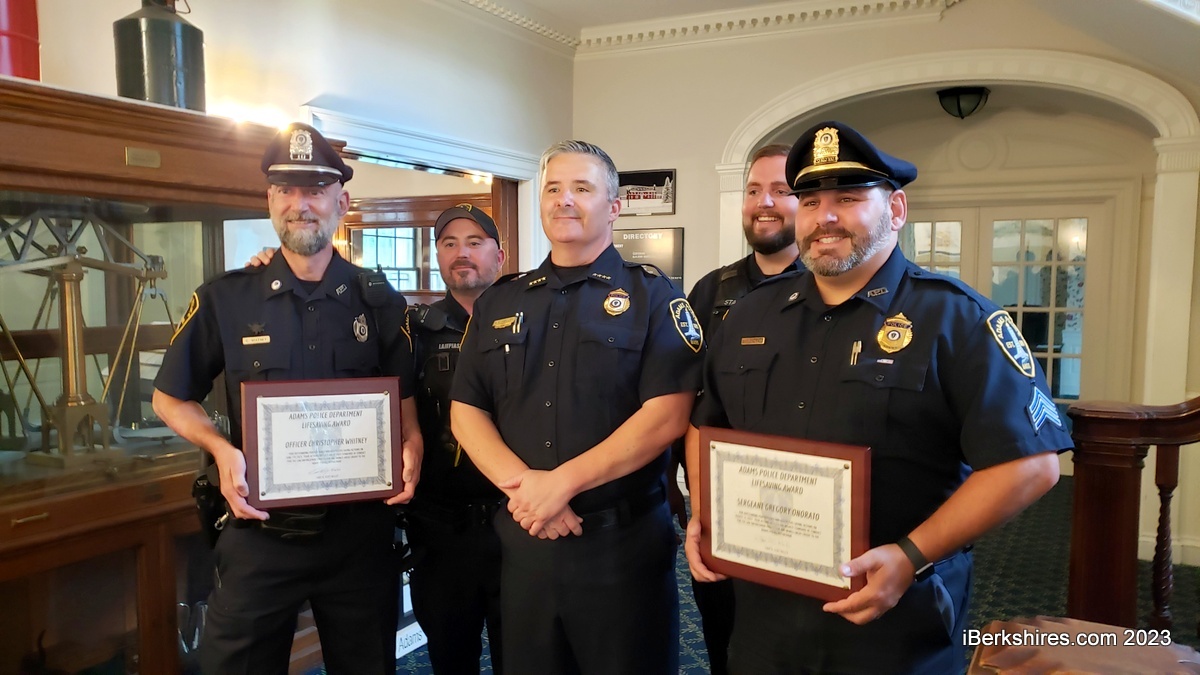 ADAMS, Mass. — Two town police officers were recognized on Wednesday for their life-saving actions in two separate incidents.