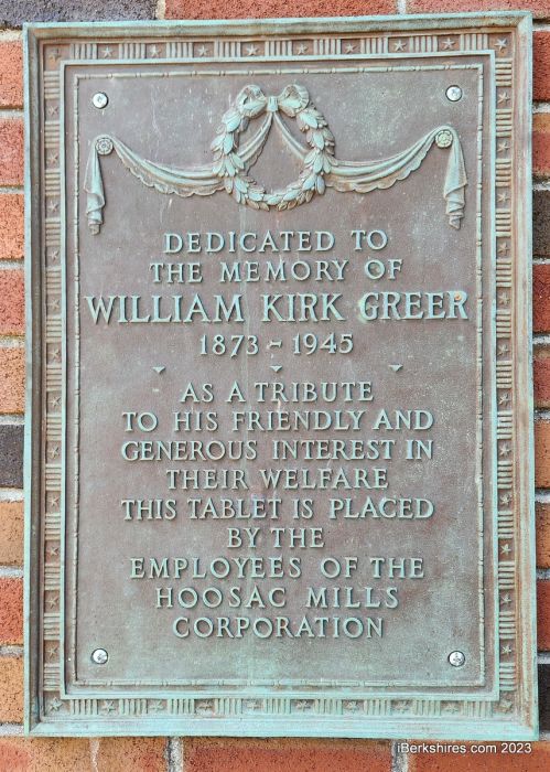 It was dedicated in front of 350 employees, company executives and union leaders in the now demolished warp room of the Union Street mill, according to an article in the North Adams Transcript. Greer, the mill's agent (similar to CEO), was described as being fair and generous, a leader at a critical time in the '30s, a friend to everyone, and "an upright citizen."